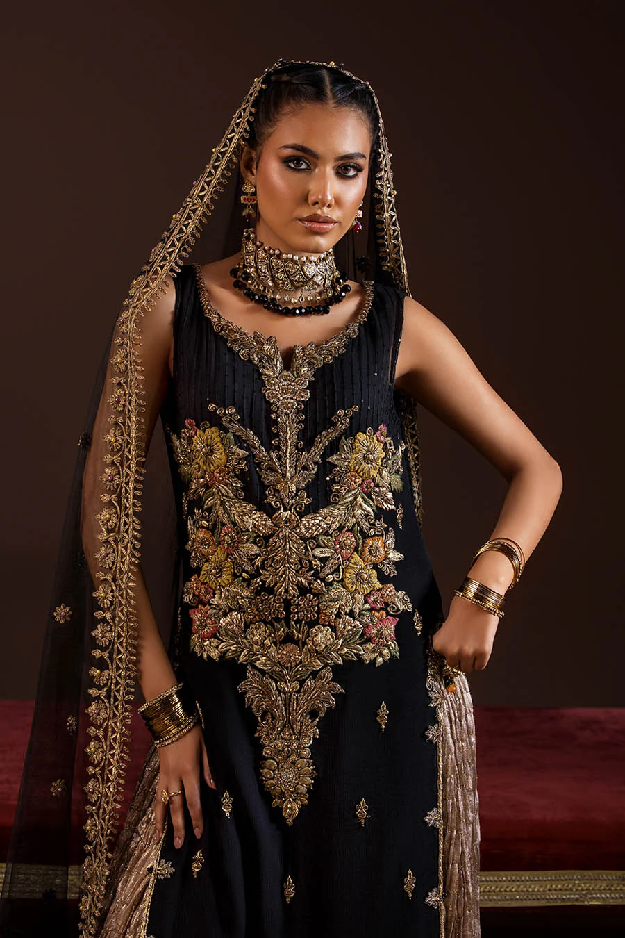 - Shirt: Crinkle Chiffon (kora, dabka, zardozi 3d work)